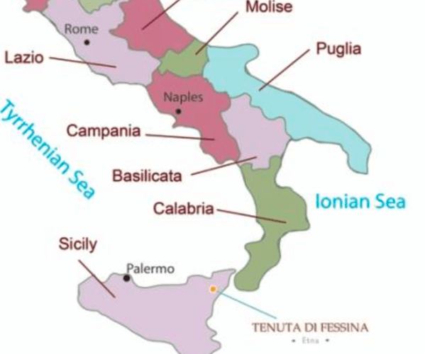 Located between two ancient lava beds, the volcano and Tenuta di Fessina together create a unique micro climate. In the village of Rovittello, the winery has vineyards on different sides of the mountain, in Rovittello and between Milo and Santa Maria di Licodìa.