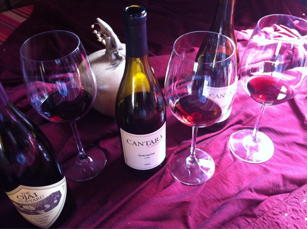 In honor of Grenache Day 2012, we tasted four: one from Horse Heaven Hills AVA by Alexandria Nichole, two from Lodi California made by Mike Brown at Cantara Cellars in Camarillo, and one from Thompson Vineyards in Santa Barbara made by Adam Tolmach at Ojai Vineyards.