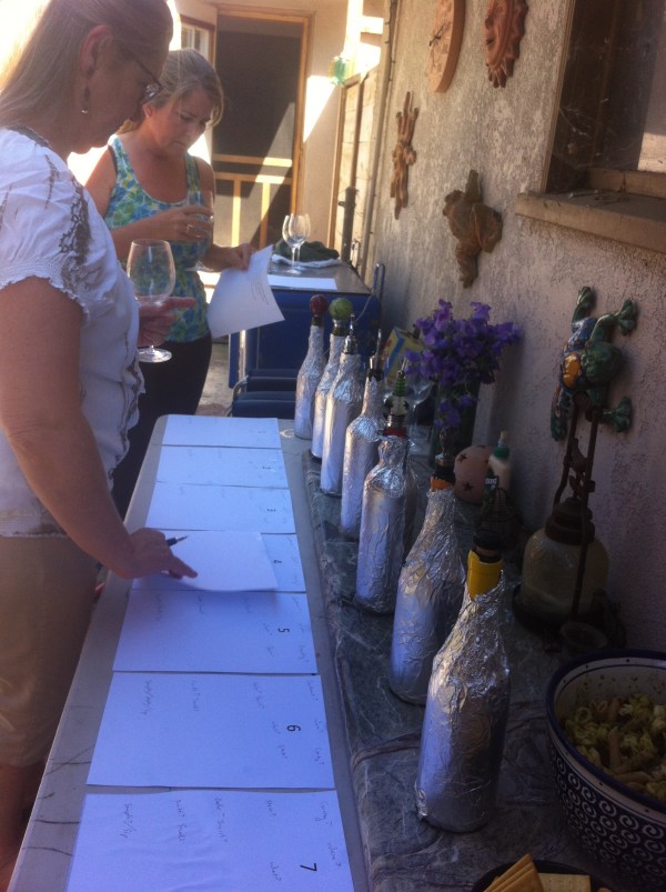 It was a warm day in Ojai so instead of paper bags, we wrapped each bottle in foil, used painters tape with sharpie to number them, printed out tasting sheets, made a plate with goat and other cheeses and appetizers including a pesto pasta salad, and away we went! We grabbed them randomly from the ice chest and plopped the on the table for the tasting. Here are our results: Continue reading