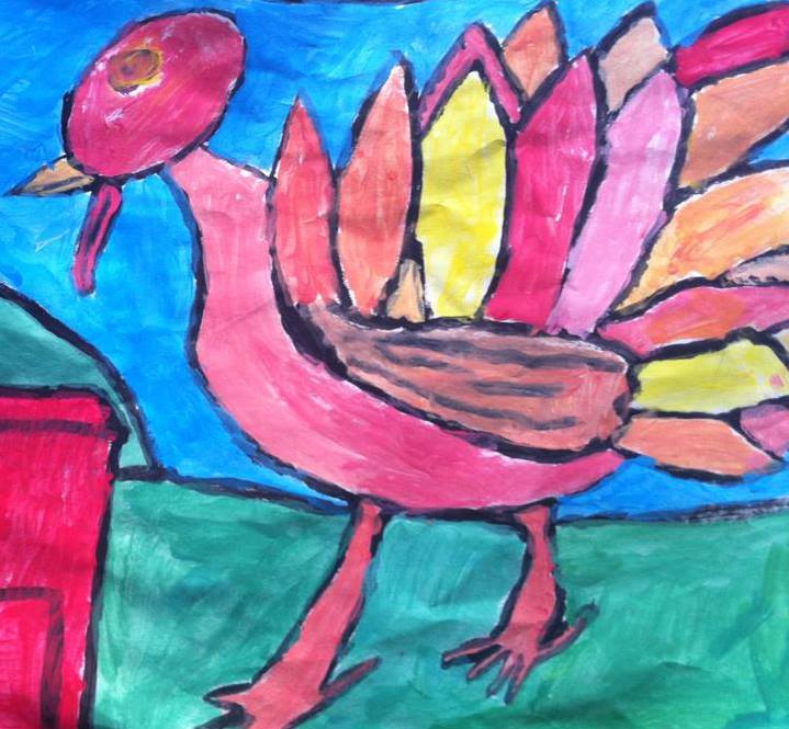 May your thanksgiving celebrations be as colorful as this turkey by my nine year old son which we taped to our purple front door (look Mom, he said, no brown!)