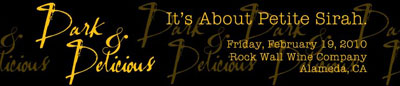 Tonight P.S. I Love You, a Petite Sirah advocacy group led by Jo Diaz, presents “Dark & Delicious” to Petite Sirah and foodie fans who can get to the SF Bay Area tonight, Friday night February 19, 2010.